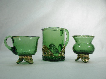 McCain's Collector's Encyclopedia of Pattern Glass lists Lacey Medallion as souvenir ware manufactured by U.S. Glass from 1905. She also says (plate 154) that "most" Colorado pieces have feet. In general, for any of these transparent green pieces, if they're dated pre-1905 I would call them Colorado; for dates after that, who knows?